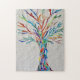 Esta quebra-cabeça decorativa de quebra-cabeça apresenta um impressão de um mosaico de cor arco-íris. O design original foi feito em mosaico usando minúsculos fragmentos de vidro de cor clara colocados em um fundo de gesso de cinza pálido. Design Mosaico original © Michele Davies