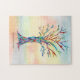 Esta quebra-cabeça única de quebra-cabeça é decorada com uma árvore de mosaico colorida em um fundo de aquarela. Facilmente personalizável com seu nome de família ou citação inspiradora. Mosaico original e Watercolor © Michele Davies.