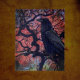 Para fãs do raven e da natureza! Quebra-cabeça de quebra-cabeça que mostra a foto de um Raven preto e uma flamejante árvore de mapeamentos japoneses vermelhos, torcidos e brilhantes. Selecione o tamanho do seu quebra-cabeça.