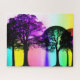 Quebra-cabeça Árvore Negra Silhuettes e Fundo Arco-íris