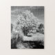 Esta foto mostra uma foto em preto e branco de árvores country.