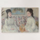 Este design apresenta uma pintura do Impressionista Francês Berthe Morisot (1841-1895). Ele retrata duas irmãs elegantes sentadas juntas num sofá. Ambas as irmãs se parecem: elas têm penteados semelhantes e ambas vestem vestidos brancos com pontos azuis. Eles estão vestindo colares pretos no estilo do chocolate. As senhoras estão em uma sala de estar elegante. A irmã à direita está segurando um fã em sua mão. A obra de arte original foi pintada por Berthe Morisot em 1869.