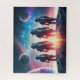 Ilustração de astronautas em naves espaciais que estão sobre a superfície do planeta alienígena olhando para o espaço em outros planetas no espaço profundo.