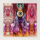 Linda, caprichosa, surreal e trivial colagem de uma entidade estranha, de outro mundo, feminina em cores do arco-íris.
