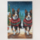 This festive design captures the joyful spirit of the holiday season, featuring an adorable dogs.Nestled in a winter wonderland, complete with a decorated Christmas tree, and beautifully wrapped presents. Snowflakes gently fall, adding a magical touch to the scene, while the vibrant colors of the holiday decorations create a warm and cheerful atmosphere.