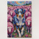 This whimsical watercolor features a Blue Merle Australian Shepherd with dazzling blue eyes, magically herding a swirling flock of bright pink and ruby red heart-shaped sheep. A colorful and energetic Valentine's Day gift for Aussie owners.