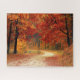 Uma fotografia de um enrolamento silencioso de sujeira entre a gloriosa floresta do outono enfeita esta quebra-cabeça.