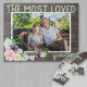 Quebra-cabeça de fotografia encantadora para o seu avô - excelente para dia de os pais ou presente de aniversário. O modelo está pronto para você adicionar sua própria foto e você também pode editar "vovô" no seu título preferido (ou seja, não, papai etc), se desejar. Este design floral de aquarela apresenta uma madeira rústica escura, com flores e rosas selvagens roxos de cor rosa, pêssego e cassis. O texto diz "o vovô mais amado" em letras visuais atraentes e tipografia de scripts. Procure na nossa loja itens ou designs de alternativo correspondentes.