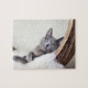 Gato azul do russo bonito que relaxa na pele do cordeiro