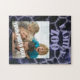 O padrão original de impressão animal nesta Quebra-cabeça de Jigsera foi feito de uma fotografia original de ZoeSPEAK de uma girafa. O padrão é feito em tons de azul. Há um texto que diz FAMILY ZOO. Este é definido para personalizar, usar como está ou excluir se preferir. Há também um modelo de foto para você substituir por sua própria foto.