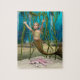 Pequena sereia bebê bonitinha em um fundo de oceano de fantasia azul