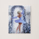 Quebra-cabeça bailarina de fantasia azul e branca com rosa