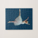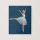 Esta bailarina pequena em seu traje branco de fluxo parece voar através do ar em um fundo do azul profundo. Personalize o produto adicionando um monograma, um subtítulo, ou um nome.
