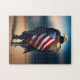 Quebra-cabeça Bald Eagle Vestindo Armor Segurando Bandeira Ameri