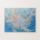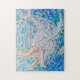 Uma criatura fantástica, com uma mistura de baleia e touro, mostra os glides através de um fundo azul vibrante e girando. As cores se misturam num estilo mosaico, melhorando a presença mítica da criatura.