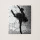 A bailarina dançante clássica parece tão elegante nesta impressão abstrato moderna. Os círculos pretos e brancos constituem a silhueta desta dançarina balé num tutu. Perfeito para as bailarinas da sua vida ou para aqueles que amam balé. Abstrato Dancer Black White Ballerina Artista quebra-cabeça.