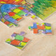 Um quebra-cabeça com os balões de ar quente da Corrida Balão do Excelente Reno, que acontece a cada setembro. Os balões coloridos decolam quando o sol nasce sobre as montanhas roxas. Cores brilhantes de laranja, vermelho, amarelo, azul e verde decoram os balões. Ilustrado com aquarela, marcador e lápis colorido.