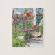 Pintura acrílica de uma paisagem bonita que caracteriza um banco resistido. Isto é fora das livrarias do latido de vidoeiro do norte do estado em NY.