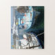 Quebra-cabeça de Souvenir com uma imagem de barcos pesqueiros amarrados num porto de Grécia.