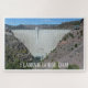 Área nacional de recreação dos EUA Imagem fotográfica da histórica barragem Flaming Gorge em Utah, no dia bonito com o céu azul. Foto de viagem de férias de 20" x 30" com quadro branco que dá à foto a aparência de um filme de férias vintage. O título Flaming Gorge Dam foi adicionado no texto de tendência. Outros tamanhos disponíveis em listagens separadas.
