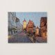 Uma fotografia bonita recolhida a noite na hora azul do Plönlein no der Tauber do ob de Rothenburg, Franconia, Baviera, Alemanha é caracterizada neste quebra-cabeça de serra de vaivém.