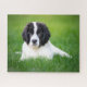 Esta fofa Getty Images apresenta um cachorrinho de Landseer deitado no gramado do jardim.