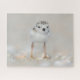 Esta fofa Getty Images apresenta um pintinho de um dia, Piping Plover, parado na areia na praia Long Island, Nova Iorque.