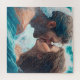 Uma bela trabalho de arte de um casal amontoando na água juntos. Um beijo nas ondas.