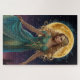 Bela Deusa Cósmica, quebra-cabeça. © Jigsen Wonderland em Zazzle. Esta quebra-cabeça é de uma bela Deusa cósmica com cabelos louro longos, um vestido de jade e uma lua grande enfeitando seu rosto.