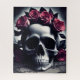 Uma pintura escura e gótica de um crânio humano cercado por rosas e pétalas góticas pidas, apresentando uma atmosfera gótica dessaturada e de outro mundo, esta quebra-cabeça é perfeita para amantes de crânios góticos escuros e flores e rosas góticos românticos escuros.