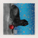 Este maravilhoso design de Natal mostra um lindo filhote de German shepherd preto com uma bola vermelha.