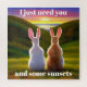 Ilustração de dois coelhos assistindo um belo pôr do sol juntos.