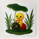 Under a lush green leaf, a joyful little traveler glides on a ladybug companion, capturing the magic of tiny adventures in a grand natural world.