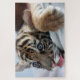 Apresentando um fôlego considerando um filhote de Bengala Tiger observando em uma colina de neve com seu pequeno bebê saindo. Esta é uma bela foto nesta poster