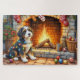 Quebra-cabeça Bernedoodle Fireplace with Christmas Lights