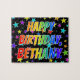 Esta vibrante e divertida design de quebra-cabeça de quebra-cabeça com tema de aniversário tem a mensagem "FELIZ BIRTHDAY, BETHANY" com os personagens que têm um espectro colorido de arco-íris inspirado num padrão de gradação, além de uma estrela viva molda o plano de fundo. Um quebra-cabeça vibrante como este pode ser uma maneira divertida de enviar uma mensagem de saudação de aniversário a alguém chamado Bethany. [~Z0000468]