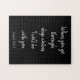 Divirta-se por horas juntando este quebra-cabeça Bíblia de verso muito desafiador. Isto apresenta uma escritura do Livro de Isaías, "Quando você passar por águas profundas, eu estarei com você". Está escrito em fonte branca e cursiva sobre fundo preto.Escolha o seu hoje!