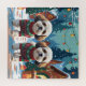 This festive design captures the joyful spirit of the holiday season, featuring an adorable dogs.Nestled in a winter wonderland, complete with a decorated Christmas tree, and beautifully wrapped presents. Snowflakes gently fall, adding a magical touch to the scene, while the vibrant colors of the holiday decorations create a warm and cheerful atmosphere.