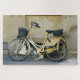 "Bicicleta Amarela, Copenhagen, Dinamarca" Quebra-cabeça de Jigseru, 20 por 30 polegadas, por Catherine Sherman. Uma bicicleta amarela se inclina contra uma parede de meteoros em Copenhagen, na Dinamarca, aguardando o retorno do seu dono.