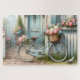 Quebra-cabeça Bicicleta de Algodão Azul com Cesta de Flor de Pri