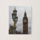 Ponha suas habilidades de fazer à prova e mantenha vivos seus sonhos de aventura de viagem de Londres com esta foto da Ponte Westminster de um poste no primeiro plano e da Torre Elizabeth e do Big Ben no fundo. quebra-cabeça de serra de 8 x 10 polegadas com 110 peças.