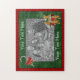 Biscoitos bonitos de gengibre que escapam de uma lata de biscoito e de uma bengala festiva de gengibre com um grande feriado de Natal de arco vermelho seu quebra-cabeça fotográfico. Substitua o texto nos modelos ou não se esqueça de excluir sem texto. Clique em Alterar e carregue sua imagem. Clique em Personalizar para ajustar sua foto e alterar o tamanho, o estilo e a cor da fonte. Entre em contato comigo com quaisquer perguntas ou solicitações de design. Visite o tesouro dos olhos sorrindo para ver mais cartas e presentes para sua casa ou escritório.