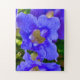 Lose yourself in the captivating elegance of the Thunbergia grandiflora also known as Bengal Clockvine captured in full bloom. Vivid cobalt-blue petals unfold against a lush green backdrop, with dew-kissed textures that make this image a tactile joy in puzzle form. The velvety gradients and creamy floral throats offer color-block challenges ideal for puzzle enthusiasts.