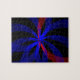 Have fun putting together this modern custom 110 piece red highlight blueberry color center geometric designed puzzle.
