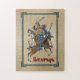 Uma representação de uma batalha entre uma ponte russa e um guerreiro asiático, ambos em cavalo. O texto cirílico (russo) que lê "Б о а т ы гьрs" (Bogatyr) também é exibido. Bogatyri são personagens heroicos encontrados em épicos eslavos medievais. São parecidos com os cavaleiros da literatura ocidental. A maioria das histórias sobre bogatyri gira em torno do tribunal de Vladimir I de Kiev (958-1015). Presume-se que alguns bogatyri sejam números históricos. Bogatyri protegeu a terra e as pessoas russas contra invasores, especialmente os Tatares. A alguns foram atribuídos poderes e força que eram quase divinos. Esta imagem é adaptada a partir de uma linha preta e branca ilustrando em "П о с т ь е о в с л а в н ы х б о г а т ы р я х з л а т о м г р а д е К и е в е и в е л и к о й н а п а с т и н а з е м л ю Р у с с к у ю Cidade de Ouro Kiev e o Excelente Scourging da Terra Russa), por Tamara Probhiotal; publicado na URSS em 1974.
