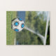 A bola de futebol azul e branca no capim está esperando para ser chutada para marcar. A fotografia de alta resolução cria uma interessante declaração de futebol para o amante do futebol. Personalize adicionando ou alterando o nome. A fonte pode ser alterada por tamanho, estilo, cor ou local.