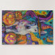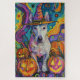 Abraçar o espírito do Dia das Bruxas com esta design encantadora que apresenta um cachorro fofo num chapéu de bruxa rodeado por abóboras entalhadas. Perfeito por adicionar um pouco de charme assustador às suas comemorações festivas.