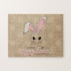 Para aqueles que optam por manter seu estilo neutro com apenas um pop de cor bonito! Esta quebra-cabeça de serra de Páscoa sazonal apresenta um rosto bonito de coelho com orelhas disquetes de cor rosa pálida, olhos brilhantes e sussurros de preto, e o texto "Felz pascoa" no mesmo esquema de cores. O fundo é um belo design de burlap (faux) bronzeado com bolinhas transparentes. (O quebra-cabeça também está disponível com um nome de família personalizado em vez do texto "Felz pascoa".) A quebra-cabeça de serra é um presente de Páscoa excelente para crianças, netos, professores, colegas de classe, vizinhos, anfitriões, idosos ou para serem usados como prêmios de festa! Por favor, pesquise nossa coleção completa de neutrais de Páscoa, Páscoas tropical, Páscoas costeira e ideias e presentes de decoração de Páscoas náuticas!