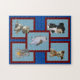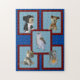 Bonecas de animais colocadas sobre fundo azul pálido, quadros coloridos de dentro plum. Cinco Dolls diferentes (cachorro, cachorrinho, coruja, gato e esquilo). Uma imagem fica em cada canto com a quinta imagem colocada sobre ela no centro. As imagens estão definidas sobre fundo azul escuro.
