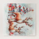 Quebra-cabeça Bonita Reindeer de Natal Illustração de Arte Colorida Divertida/Personalizável Único